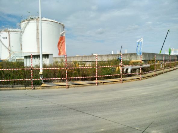 地理位置及周邊環(huán)境:上海孚寶港務(wù)有限公司廠區(qū)南臨海堤,北側(cè)C2地塊屬于上海氯堿公司,西側(cè)A1、A2、A3、B地塊屬上海賽科公司用地,東側(cè)D1地塊分別屬于巴斯夫聚氨酯公司、亨斯邁聚氨酯公司、上海聯(lián)恒異氰酸酯公司。 013#罐組及泵區(qū)位于庫區(qū)的中部,其東側(cè)為已建的010#罐組;南側(cè)為已建的008#罐組和011#罐組;其西側(cè)為已建019#罐組、擬建甲類危廢庫;其西北側(cè)為已建的消防廢水收集池;北側(cè)為庫區(qū)預(yù)留用地,現(xiàn)為空地。新增泵組布置于013#罐組現(xiàn)有泵區(qū)東部。018-2#罐組及泵區(qū)位于庫區(qū)的北部,其東側(cè)為庫區(qū)預(yù)留用地,現(xiàn)為空地;南側(cè)為庫區(qū)預(yù)留用地,現(xiàn)為空地;西側(cè)為已建的區(qū)域變電站及焚燒爐;北側(cè)為018-1#罐組。 | |